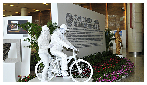 據了解,本次雕塑(攝影)成果展是由園區城管局負責籌備的,自去年10月籌備啟動以來,共歷時半年多,從園區目前已設置的150組430件雕塑作品中選取了具有代表性的優秀作品68組112件進行展覽,這些雕塑委托了中國雕塑學會、蘇州大學藝術學院等專業單位的雕塑家進行翻制,配合從2000多幅攝影作品中精挑細選的120幅優秀攝影作品,以雕塑模型和攝影圖片相結合的形式展示了園區15年城市景觀建設的成果。另外,配合本次展覽,園區城管局還推出了一本攝影作品集,將園區15種景觀雕塑濃縮其中。