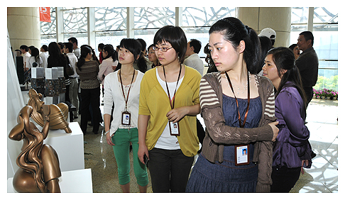 金雞湖畔的“圓融”、獨墅湖高教區前的“升華”、湖濱大道上的輪滑者……一個個令市民熟悉的雕塑都被搬到了科文中心。5月8日,蘇州工業園區15周年城市雕塑(攝影)成果展在科文中心開展,68組112件雕塑作品被翻制成模型,配合著120幅優秀攝影作品展示在市民的面前。蘇州市副市長朱建勝、園區工委副書記、管委會副主任施玉初出席了開展儀式。