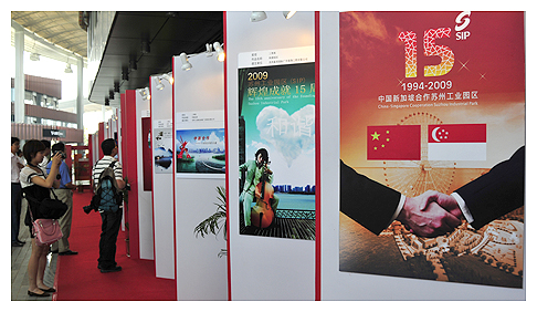 李詩藝的作品《品位繁華》在此次活動中獲得了一等獎。一杯茶、幾縷輕煙便將園區的典雅與文化品位烘托了出來。談到作品的靈感,李詩藝表示,蘇州工業園區經過15年的開發建設,已經發展成了一座現代化新城,要體會發展這其中的味道,就要像品茶一樣細細斟酌,而茶杯中散發的“茶香”則是園區的一些代表性建筑。另一位獲得一等獎的作品徐天倫表示,海報作為平面設計者最具代表的表現形式,有著自身強烈的特點,它像一面鏡子一樣可以折射出時代的變遷和歷史印記。