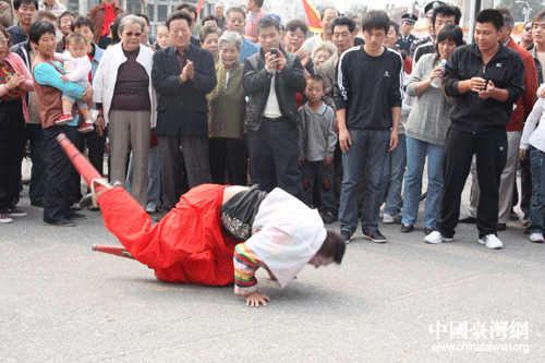 中國臺灣網10月4日消息 第四屆中國·天津媽祖文化旅游節花會踩街表演在河東區天妃宮前廣場展開表演。