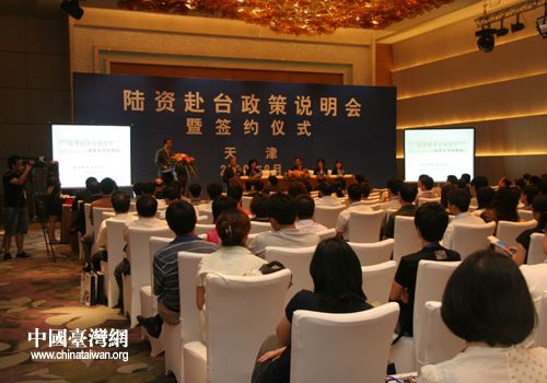 8月5日上午,天津市國有企業(yè)、民營企業(yè)、中小企業(yè)及天津市的臺資企業(yè)相關(guān)人員共200人參加了“陸資赴臺政策說明會”,聽取了陸資入臺政策的介紹,并就加強(qiáng)津臺企業(yè)合作進(jìn)行了深入交流。說明會期間,天津市工商聯(lián)與臺灣工業(yè)總會簽署了服務(wù)雙方企業(yè)的合作備忘錄,一輕集團(tuán)、王朝酒業(yè)集團(tuán)、力神公司、津酒集團(tuán)與臺灣工業(yè)總會簽署了赴臺投資意向書,天津企業(yè)對赴臺發(fā)展表現(xiàn)出更加濃厚的興趣。