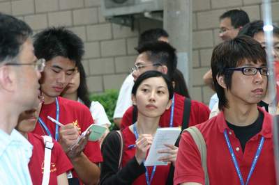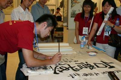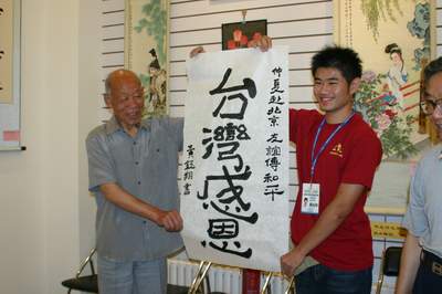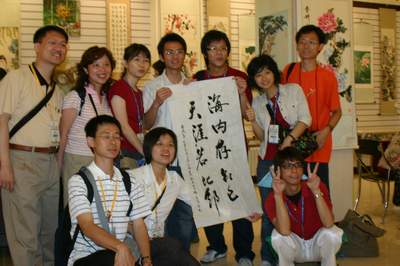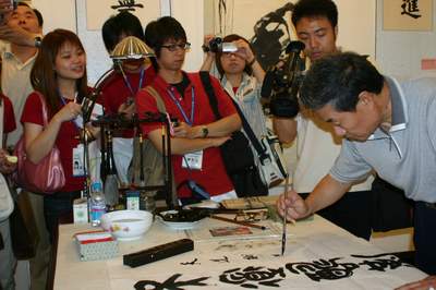 臺(tái)灣學(xué)生即興展示書法