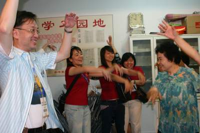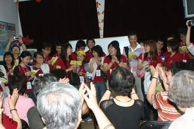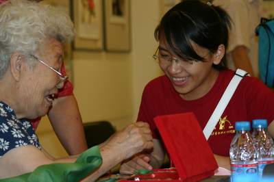 社區(qū)老人和臺(tái)灣大學(xué)生一起聯(lián)誼