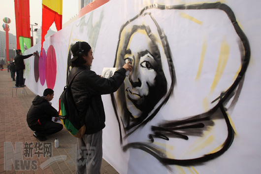 11月18日,表演者在北京文博會上進行涂鴉表演。