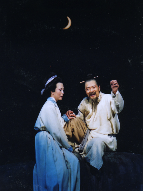 杜子美云,“白也詩無敵!逼鋵嵢艘矡o敵。并非金人玉佛,而在于真。他的仗劍去國辭親遠游的闊達,他的傲岸疏狂,他的消沉,他的認真,還有他因求官心切被后人指斥的庸俗和淺薄,都水晶般通明透亮,可以使人一覽無余。“兩間余一卒,荷戟獨彷徨”。借用迅翁的詩,李白則是彷徨于“道”與“勢”的“兩間”;然而李白的主流是積極入世的,前人所謂“飄然太白”不過是心造的幻象,那不是曾寫過《與韓荊州書》的李白!我們摯愛著李白。本來,我們對中國歷史、中國文化就有著一種近乎癡迷的愛。這種愛不是向著發黃的故紙堆,每當我們從現實中獲取新鮮認識的時候,我們便發現這種愛乃是向著一條貫流古今的長河。編導一個公認了的浪漫主義詩人的戲劇,理應賦予這出戲以自身獨特的形式。是詩化些?寫意些?豐富的想象?飛動的形象?也許不可或缺的更有一種空靈,一如嚴羽所說,“空中之音,相中之色,水中之月,鏡中之象,言有盡而意無窮”。然乎?