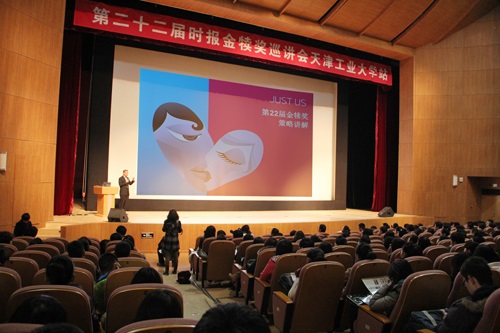 天津工業大學是本屆金犢獎天津地區巡講會的承辦者。我校以往就多次主辦金犢獎的校園宣講會,并且每年都會邀請國內知名廣告人來我校舉行主題報告。我校人文與法學院、藝術學院和軟件學院擁有濃厚的人文藝術氣息和扎實的專業技能,為廣告創意營造了良好的氛圍。在歷屆金犢獎比賽中,我校無論從參與人數還是獲獎人數在天津地區都是首屈一指。