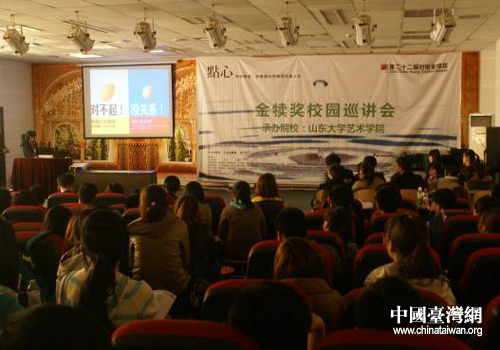 中國臺(tái)灣網(wǎng)3月28日濟(jì)南消息 由旺旺中時(shí)媒體集團(tuán)、中國商務(wù)廣告協(xié)會(huì)、山東大學(xué)共同舉辦的第22屆金犢獎(jiǎng)巡講會(huì)山東站于3月27日在山東大學(xué)藝術(shù)學(xué)院報(bào)告廳舉行,同時(shí)舉辦了第21屆時(shí)報(bào)金犢獎(jiǎng)獲獎(jiǎng)作品展覽。濟(jì)南市委臺(tái)辦巡視員謝愛民應(yīng)邀參加了巡講會(huì)。