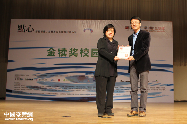 3月20日下午,由旺旺中時媒體集團主辦、中國臺灣網媒體協辦的第22屆時報金犢獎在中國傳媒大學舉行首場巡講會,組委會為中國傳媒大學頒發感謝狀。