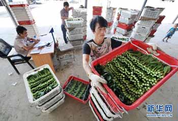 8月1日,在寧夏回族自治區永寧縣望洪鎮,農民在搬運供港蔬菜。近期,寧夏回族自治區銀川市永寧縣的9個供港蔬菜基地2.1萬畝供港蔬菜進入采摘期,當地農戶正在抓緊采摘,預計產量將達到6.3萬噸,對香港市場的供應將一直持續到10月份。供港蔬菜就像一張“綠色名片”,間接地帶動了銀川供外蔬菜的銷售。新華社記者 彭昭之