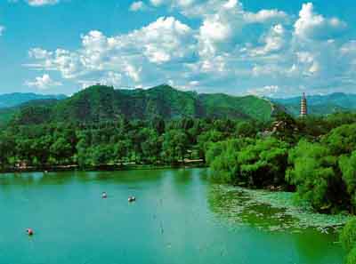 熱河泉是承德砂礫巖下的地下溫泉,雪飄冰封的季節,熱河泉附近卻是熱氣范騰,從不結冰,被稱為塞外奇觀。據地質部門驗定,該泉水質優良,是含有多種礦物質的礦泉水,有關單位現已將其加工提純,作為一種消夏佳品。塞湖以此水為源,不但清澈澄碧,宜于游賞,而且水源充沛、穩定,可以植蓮、養魚、美化環境。夏季,這里荷花競放,浮萍點點,蘆葦叢叢,是游人泛舟蕩槳的好地方;冬季,這里湖水結冰光滑如鏡,又是理想的天然滑冰場。此外,大面積的湖水,對于調節山莊的氣候起著十分重要的作用。