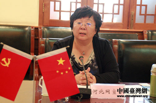 河北省委宣傳部網(wǎng)研處處長楊天華介紹本次活動的相關資料和安排等。(中國臺灣網(wǎng) 郜利敏 攝)