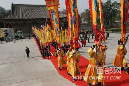 西部網訊 今年的清明公祭軒轅黃帝典禮不但是近年來規模最大的一次,也是黃帝陵祭典被列入首批國際級非物質文化遺產目錄后的首次祭典,祭典的各項儀式都更加規范,隆重的迎賓儀仗也更添了公祭典禮的隆重。