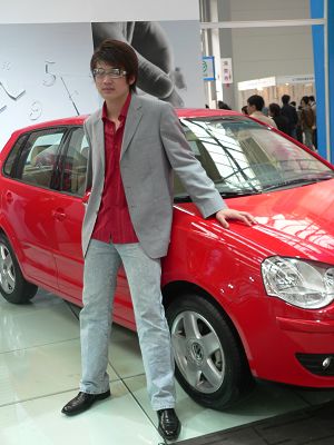 西部網訊 在西洽會上展出的許多名牌汽車旁邊往往站著一名靚麗的女模特,香車美女讓眾多游客駐足觀看,但是在上海大眾汽車的展位上,卻站著一名男車模。