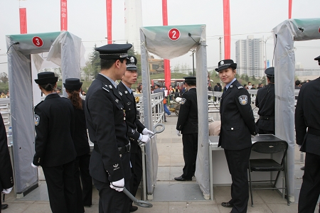 西部網訊 第十一屆西洽會4月6日在西安隆重開幕,為確保會議安全,大會特設19個安全門負責進館安檢工作。
