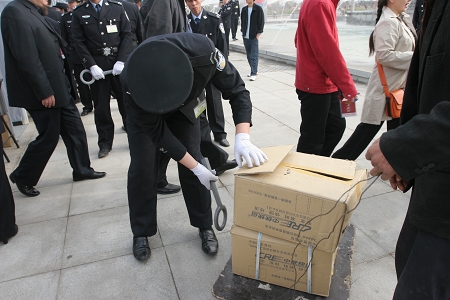 紙箱子也要認真檢查(記者錢海峰攝)