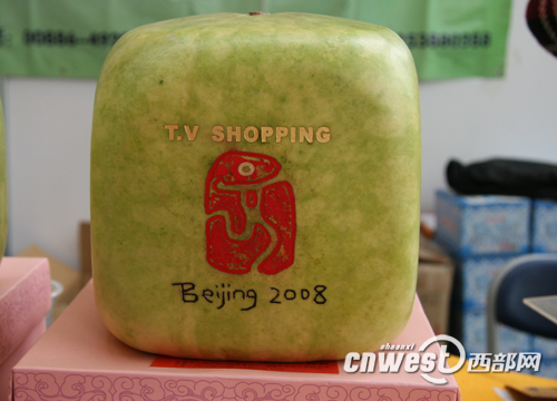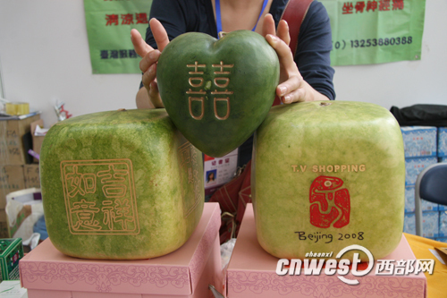 西部網訊(記者 李楠 張喆)走進西洽會臺灣展館,一個方形的西瓜吸引了所有人的注意!安灰獎樱≈豢床毁u的!”記者剛想摸摸,就被展位負責人呵止。