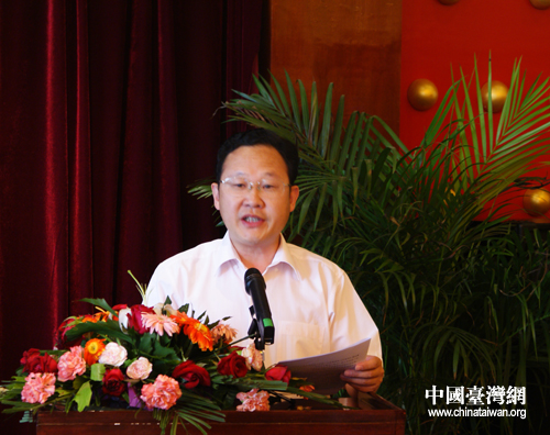 洛陽市委常委、統(tǒng)戰(zhàn)部長胡廣坤介紹洛陽市情。(中國臺灣網(wǎng) 羅煜明 攝)