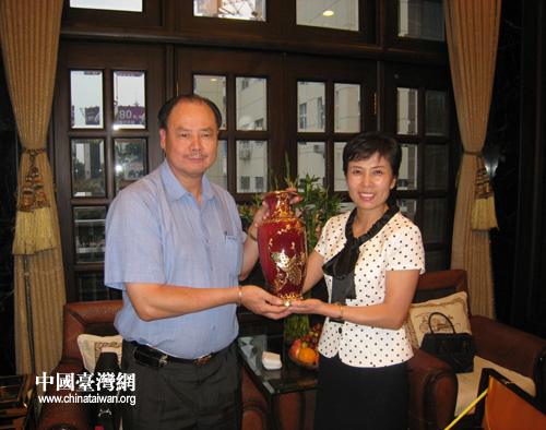 8月26日至30日,中國國民黨中央委員、臺中市議會副議長陳天汶率團到河南參加“第六屆中國(漯河)食品博覽會”,并對鄭州、洛陽等地進行參訪。圖為8月28日河南省臺辦主任宋麗萍(右)會見陳天汶一行。 (來源:河南省臺辦)