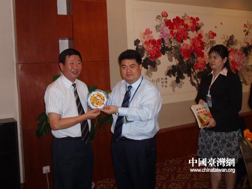 河南省委常委、統戰部長劉懷廉與參訪團團長李茂榮互贈禮品 (來源 河南省臺辦)