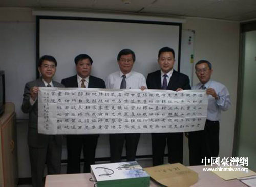 濟源市臺辦向臺灣的企業家發放了濟源畫冊和招商項目冊,還向企業和協會贈送了濟源的書法作品。