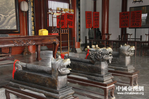 開封府內龍頭鍘、虎頭鍘、狗頭鍘。(攝影 鐘寶華)