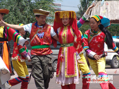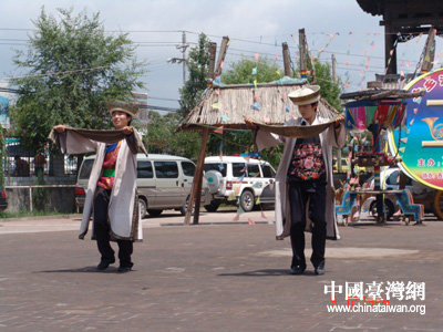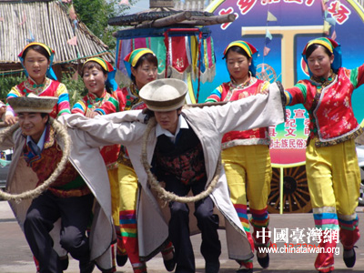 中國臺灣網7月10日消息 昨天,海峽兩岸記者青藏行聯合采訪團來到了全國唯一的土族自治縣——互助土族。記者們的到來受到了當地民眾的熱情接待。土族文化村的人們為記者們準備了精彩的節目表演,向記者們展示了土族獨特的民俗風情。記者們除了欣賞土族群眾的精彩表演,來自臺灣聯合報的記者賴錦宏和福建東南衛視記者葉青林還客串一回,扮演新郎,親自體驗了土族的婚嫁習俗。(謝曉萍)