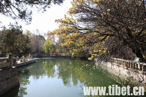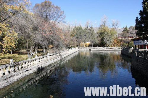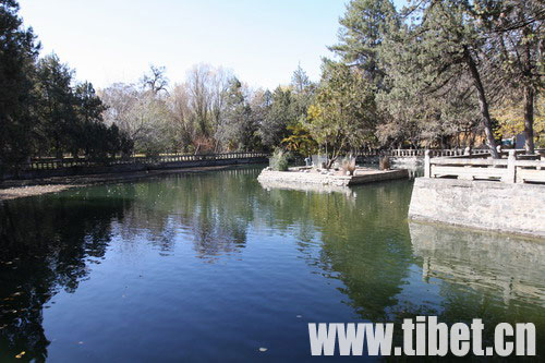 八世達賴在此基礎上把舊有的水塘開挖成湖,按漢式亭臺樓閣的建筑風格,在湖心建了龍王廟和湖心宮,兩側架設了石橋。