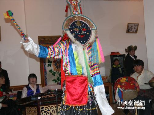 藏戲是一個非常龐大的劇種系統,由于青藏高原各地自然條件、生活習俗、文化傳統、方言語音的不同,它擁有眾多的藝術品種和流派。西藏藏戲是藏戲藝術的母體,藏戲的藏語名叫“阿吉拉姆”,意為“仙女姐妹”。據傳藏戲最早由七姊妹演出,劇目內容又多是佛經中的神話故事,故而得名。藏戲起源于8世紀藏族的宗教藝術。17世紀時,從寺院宗教儀式中分離出來,逐漸形成以唱為主,唱、誦、舞、表、白和技等基本程式相結合的生活化的表演。藏戲唱腔高亢雄渾,基本上是因人定曲,每句唱腔都有人聲幫和。(中國臺灣網 董潔 攝)