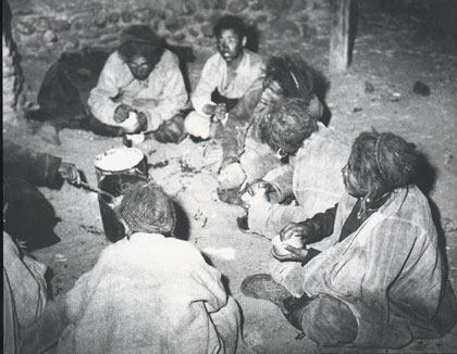 日喀則景隆莊園的農奴們在一天勞役之后,用粗糙的食物充饑。新華社資料