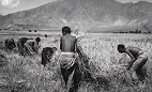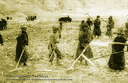 農(nóng)奴在烈日下收割青稞
