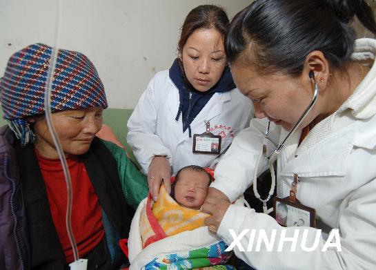 資料圖片:2007年4月9日,西藏拉薩市達孜縣人民醫院婦產科的醫生在給達孜縣唐嘎鄉農民產婦卓嘎的兒子做檢查。新華社記者普布扎西攝