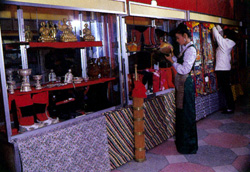 西藏民族手工業經過千百年來的不斷實踐發展,形成了鮮明的民族風格和工藝特色,產品、工藝的區域性專業化傾向也更加明確。特別是20世紀80年代以來,民族手工業的發展得到政府和市場的有力支持,一些傳統產地再度煥發出發展民族手工業的活力。目前,民族手工業的產品品種有2000多個,這些手工藝品既是民族特需產品,又是旅游紀念品。1997年夏天,筆者在昌都縣嘎瑪鄉親眼目睹了這個昔日的匠人之鄉,正在民族手工業的發展中重新崛起。該鄉的翁達崗村有32戶居民,其中24戶掌握有畫唐卡、或鑄造佛像、或加工各類金、銀、銅、鐵和木器等工藝和技術,全村76名青壯勞動力中有31名專職從事手工業生產。全村人均年收入達到2000元。嘎瑪鄉的經濟收入中已有近一半來自民族手工業的收入。西藏日喀則地區拉孜縣孜龍村和謝通門縣卡嘎兩村,以盛產藏刀聞名。目前,當地藏刀生產已從最初的家庭作坊發展到按照市場需求規模化生產,有效地增加了農牧民的收入。2001年,拉孜縣共售出藏刀3340把,銷售額近19萬元。日喀則的亞美集團目前是西藏最大的民族手工業集團,經營的品種有1600多種,資產已達上千萬。