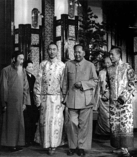 1954年9月,毛澤東主席在北京接見十四世達賴喇嘛丹增嘉措(右)與十世班禪額爾德尼確吉堅贊(前排左二)。