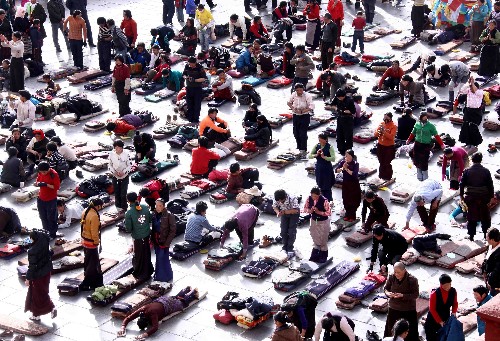 資料圖片:眾多信教群眾在拉薩大昭寺廣場朝佛(1月16日攝)。 新華社記者 陳建力 攝