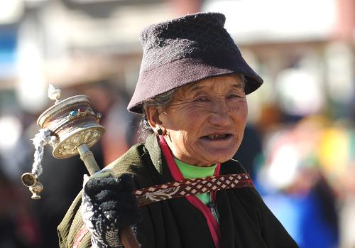 資料圖片:一位藏族老阿媽在拉薩轉經(2007年11月拍攝)。新華社記者 索朗羅布 攝