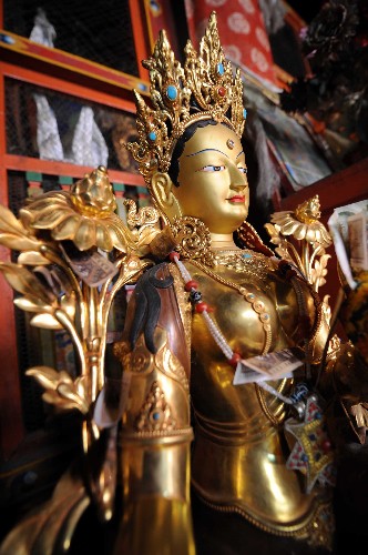 資料圖片:這是薩迦寺內重要文物之一——綠度母像(2008年11月28日攝)。 國家投資8600萬元的西藏薩迦寺維修工程已經完成了近80%,預計2009年將完成全部維修任務。薩迦寺始建于1073年,是藏傳佛教薩迦派主寺。 新華社記者 覺果 攝