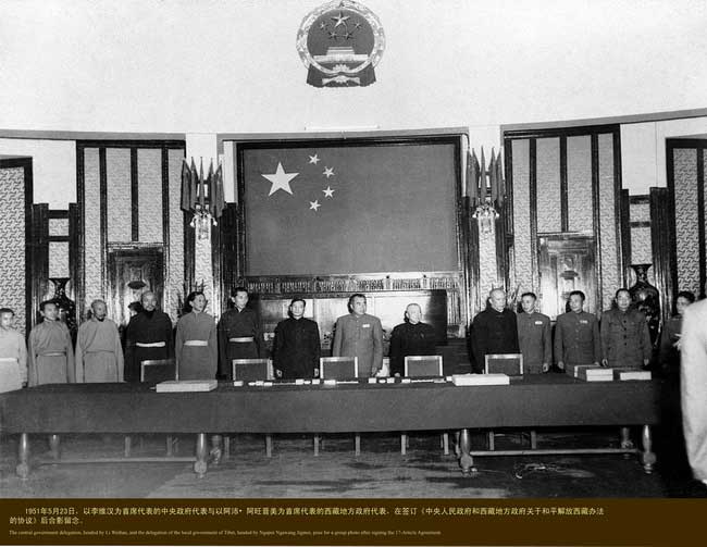 簽訂《中央人民政府和西藏地方政府關于和平解放西藏辦法的協議》。圖片來源:國家民委網站