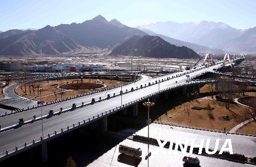 資料圖片:圖為1月7日拍攝的拉薩柳梧大橋。該橋2007年建成,總投資4.5億元,是西藏第一座現代化城市特大型立交橋,它的建成縮短了拉薩市區至拉薩火車站的距離。新華社記者 陳建力 攝