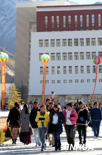 資料圖片:2008年12月16日,西藏大學(xué)校園內(nèi)的莘莘學(xué)子。當(dāng)日,西藏大學(xué)改擴(kuò)建工程竣工暨進(jìn)入“211工程”重點(diǎn)建設(shè)行列慶祝大會在拉薩舉行。新華社記者 格桑達(dá)瓦 攝