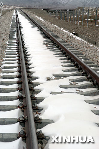 資料圖片:這是青藏鐵路穿越的昆侖山凍土地段(2006年6月18日攝)。青藏鐵路是世界上穿越凍土里程最長的高原鐵路,鐵路穿越多年連續凍土里程達550公里。 新華社記者 侯德強 攝