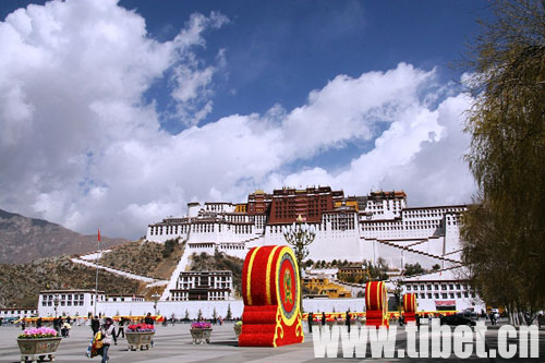 布達拉宮廣場的《八吉祥圖》引人注目
