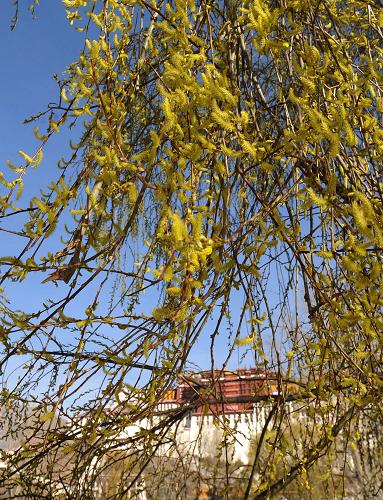 3月10日,布達拉宮廣場上樹木吐綠。春到拉薩,萬物復蘇,氣象萬千,“日光城”進入一年中最美好的季節。新華社記者 覺果攝