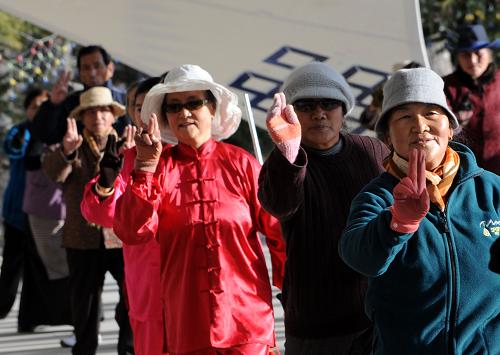 3月10日,拉薩老人在晨練。新華社記者 覺果攝