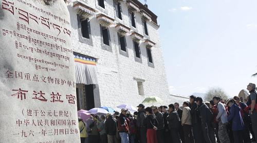 資料圖片:4月21日,游客排隊準備參觀布達拉宮。新華社記者 普布扎西攝