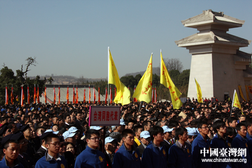 4月4日上午,壬辰年(2012)清明公祭軒轅黃帝典禮在陜西黃帝陵隆重舉行,海內外一萬多名中華兒女代表參加公祭典禮。(中國臺灣網 楊麗 攝)