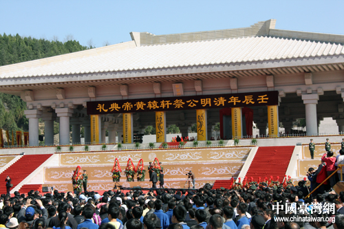 4月4日上午,壬辰年(2012)清明公祭軒轅黃帝典禮在陜西黃帝陵隆重舉行。(中國臺(tái)灣網(wǎng) 楊麗 攝)