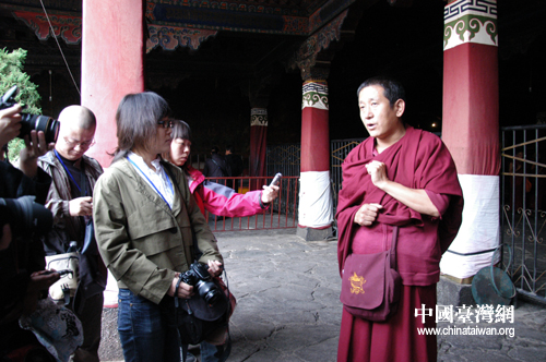大昭寺喇嘛曲扎為記者講解大昭寺以及藏傳佛教歷史 (中國(guó)臺(tái)灣網(wǎng) 李典典 攝)