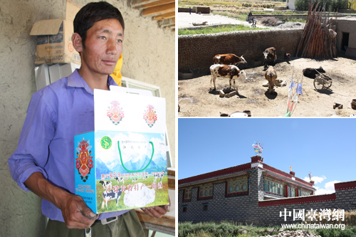 右上圖為牧民養的奶牛,右圖二為具有后藏特色的民居。(中國臺灣網 李典典攝)