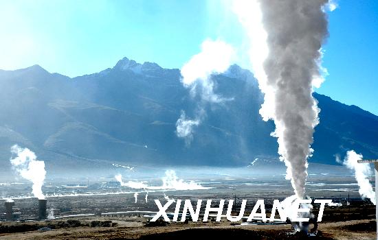 資料圖片:2008年1月9日,西藏自治區(qū)羊八井地?zé)犭姀S正在發(fā)電。新華社記者 胡星 攝