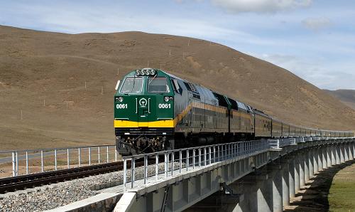 資料圖片:行駛在藏北草原上的鋼鐵巨龍(2006月6月27日攝)。新華社記者 覺果 攝